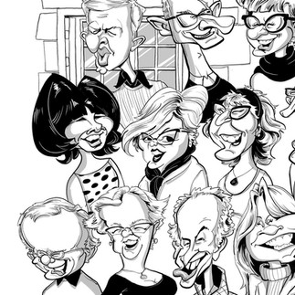 30 choral singers do an annual pilgrimage to the south of France. I was commissioned to draw them from photos and compose them all together into one drawing. Enquire about a group caricature.