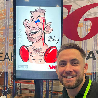 I was hired at SIG’s stand at the NMBS 2 day trade show. My first gig with my 32 inch TV on a stand … looking good. I loved capturing the subtleties of everyone’s personality. Even drawing mascots in costume. Thank you team SIG.